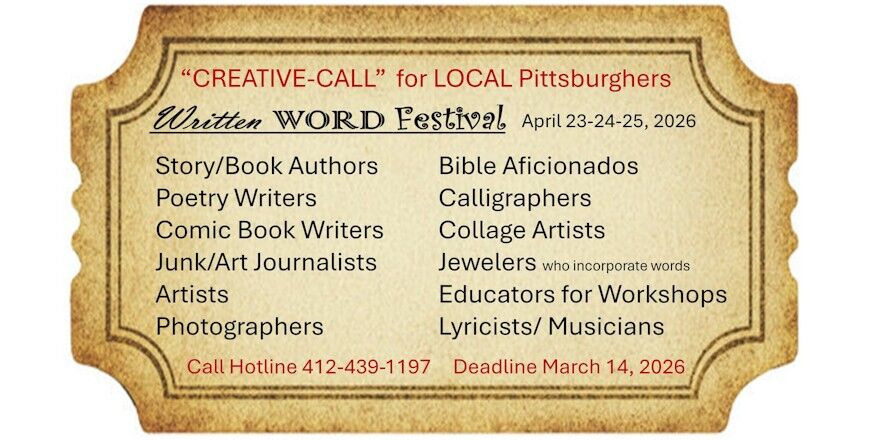 Event is April 23-24-25. Looking for people who are Written Word Creative People in and around the Pittsburgh area to set up a table space and sell their books, 'zines, poetry, art with words like collages, greeting cards and other items.